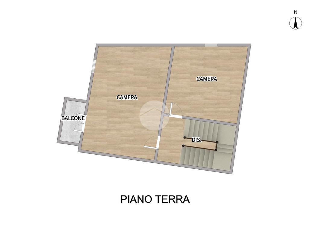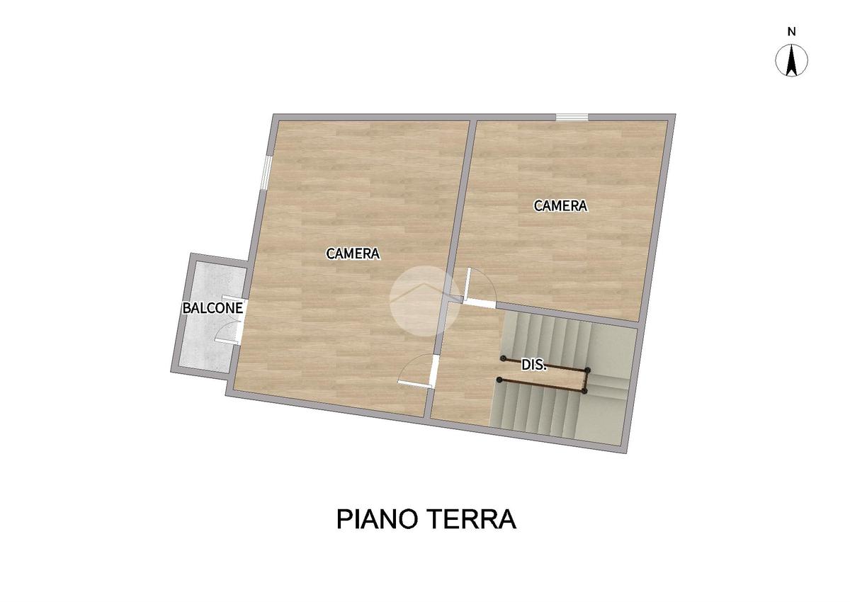 Al piano principale si trova un soggiorno accogliente, ambiente luminoso e ben distribuito, affiancato da una cucina separata e da un bagno finestrato. La scala interna porta al piano superiore, dove un comodo disimpegno introduce due ampie camere matrimoniali; una di queste dispone di balcone, un piacevole spazio esterno dove godersi la vista e l’aria fresca.