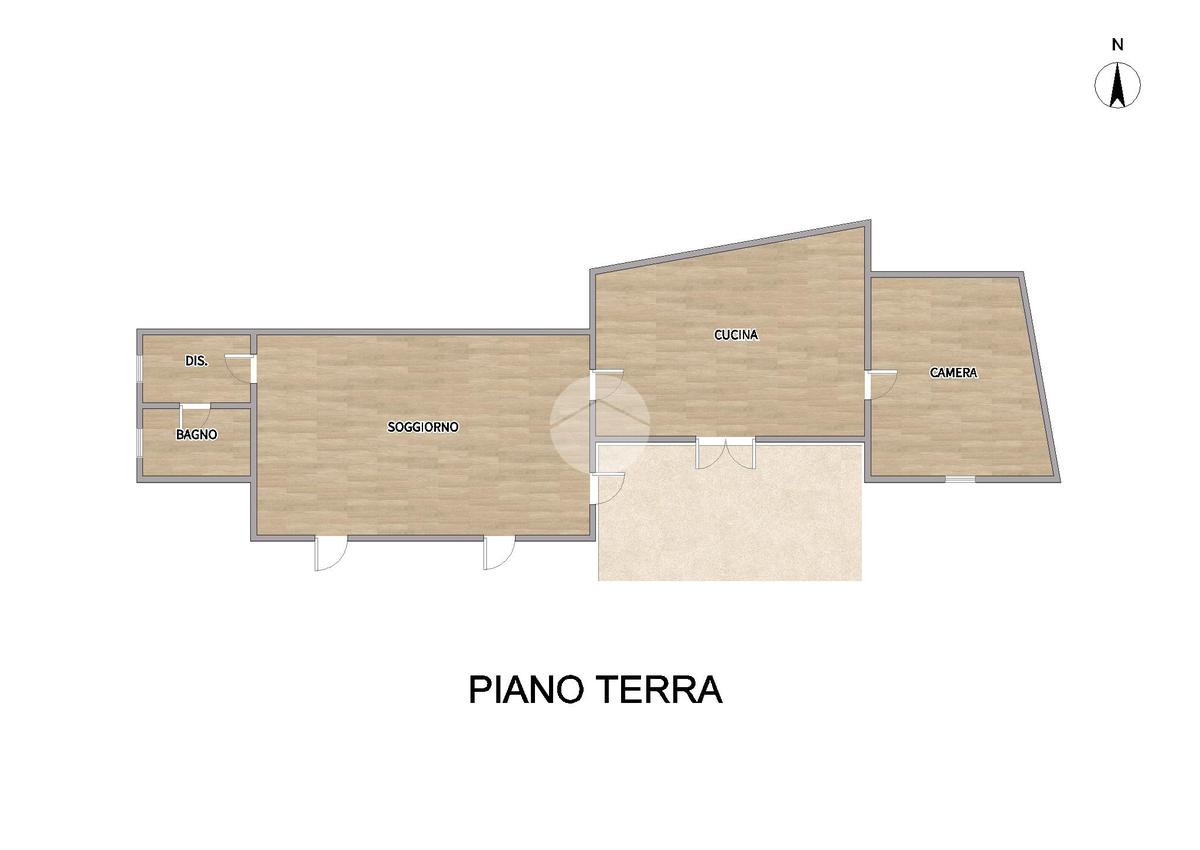 Al piano terra si trova un’ampia e luminosa zona giorno con accesso diretto al giardino, con possibilità di ricavare una camera e un bagno secondo le proprie necessità.