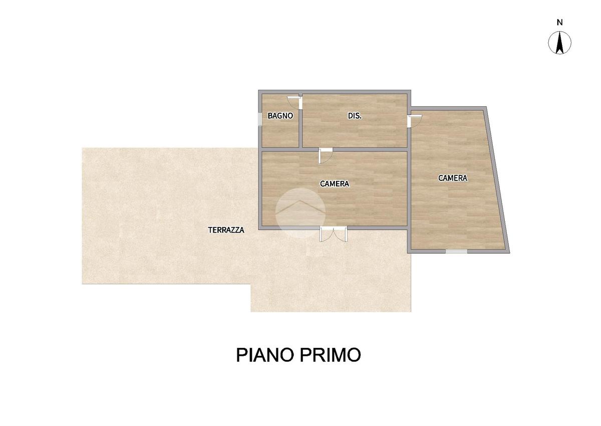 Al primo piano si sviluppa la zona notte, composta da una cameretta, un bagno finestrato e una camera matrimoniale con accesso a una spaziosa terrazza vivibile.