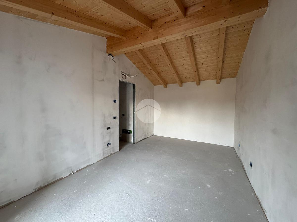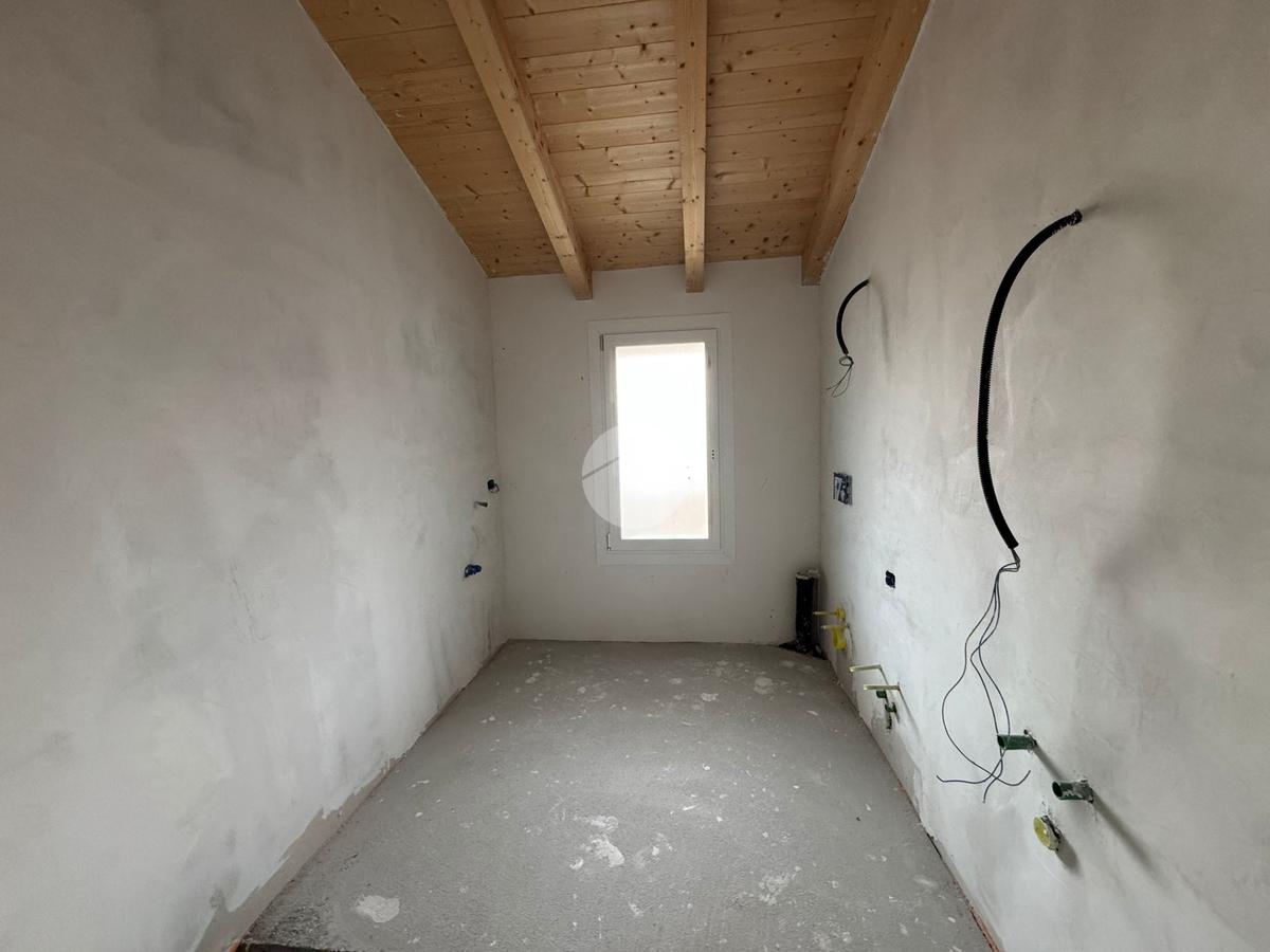 L'abitazione è composta al primo piano da una luminosa zona giorno con soggiorno, cucina abitabile e bagno di servizio, mentre al secondo piano, caratterizzato da suggestive travi in legno a vista, si trovano due ampie camere da letto, un secondo bagno e un comodo ripostiglio, ideale come spazio di servizio o armadiatura supplementare. Completa la proprietà un balcone privato, perfetto per momenti di relax all'aperto. L'immobile è dotato di impianti moderni e finiture di qualità: riscaldamento a pavimento con pompa di calore, predisposizione per il raffrescamento estivo, cappotto termico da 10 cm, infissi in PVC con triplo vetro e impianto fotovoltaico da 3 kW per unità, per garantire un elevato risparmio energetico. Gli interni presentano pavimenti in gres porcellanato, porte interne bianche e sanitari sospesi, per un ambiente elegante e contemporaneo. Incluso nella proprietà anche un comodo posto auto singolo, situato in una zona centrale e ben servita. Una soluzione abitativa che coniuga fascino storico ed efficienza moderna, perfetta per chi cerca comfort, stile e tranquillità.