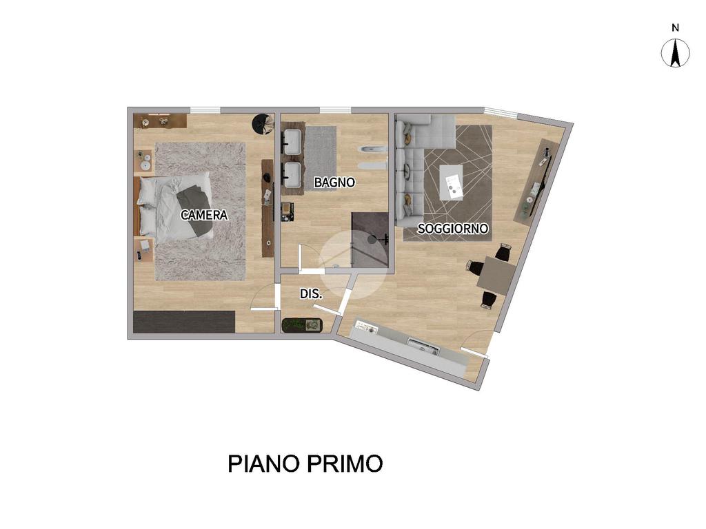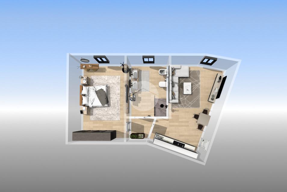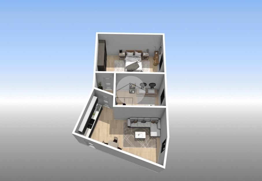 L’appartamento è composto da una luminosa zona giorno con angolo cottura, una camera matrimoniale e un bagno moderno. Gli spazi sono ben distribuiti e pensati per offrire funzionalità e comfort in ogni ambiente.