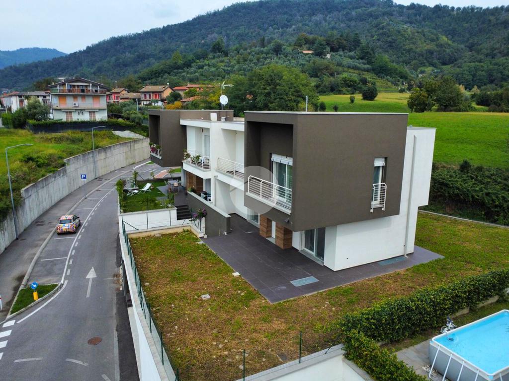 A Villongo (BG), in zona residenziale tranquilla e ben servita tra Via Marco Alessandri e Via Ripa, proponiamo in vendita una villa bifamiliare di nuova costruzione, realizzata nel 2023 e già edificata al rustico. L'immobile si sviluppa su due piani fuori terra oltre a piano interrato, con accesso semi-indipendente, box doppio e cantina, ed è inserito in un contesto elegante di sole due unità. La villa è stata realizzata con struttura antisismica in cemento armato, solai misti in laterocemento, fondazioni a travi rovesce e isolamento termo-acustico conforme alla normativa vigente. Le murature perimetrali sono già complete con sistema a cappotto esterno da 8 cm in EPS, doppio isolamento interno e controparete in laterizio, per un’elevata efficienza energetica e un ottimo comfort abitativo. Anche l’isolamento acustico tra le unità è stato realizzato con materiali di alta qualità, garantendo protezione dai rumori sia esterni che interni. La copertura è piana, impermeabilizzata con telo TPO e dotata di linea vita anticaduta conforme alle normative di sicurezza. Balconi, porticati e terrazze sono già coibentati e impermeabilizzati, Sono inoltre già installate le recinzioni in cemento armato, il cancello carraio predisposto per l'automazione, quello pedonale con videocitofono, parapetti in ferro zincato e vialetti realizzati su massetto armato. L’immobile viene venduto nello stato attuale, ossia al rustico, offrendo all’acquirente la possibilità di completare la villa secondo le proprie esigenze, sia con impresa di fiducia che con l’impresa costruttrice, con finiture personalizzabili da un ricco capitolato e prezzo da concordare in base al livello di ultimazione desiderato. Ottima occasione per chi cerca una soluzione moderna, spaziosa e personalizzabile in una delle zone più richieste del paese, con la tranquillità di una costruzione già realizzata secondo criteri antisismici, risparmio energetico e cura dei dettagli costruttivi.