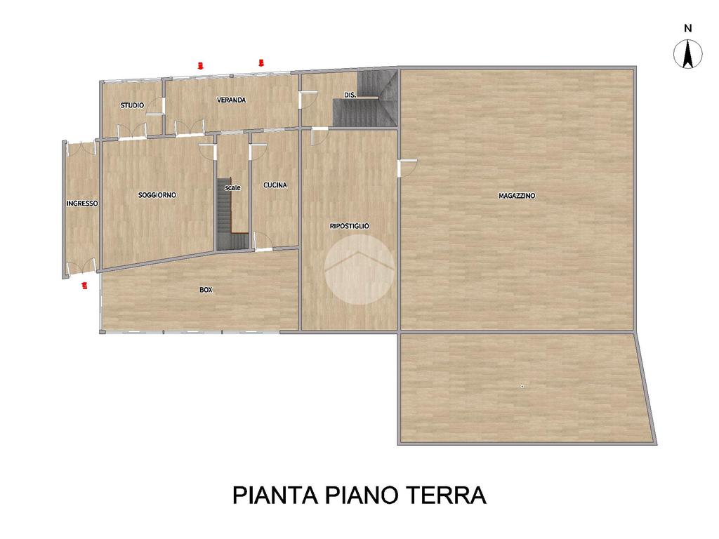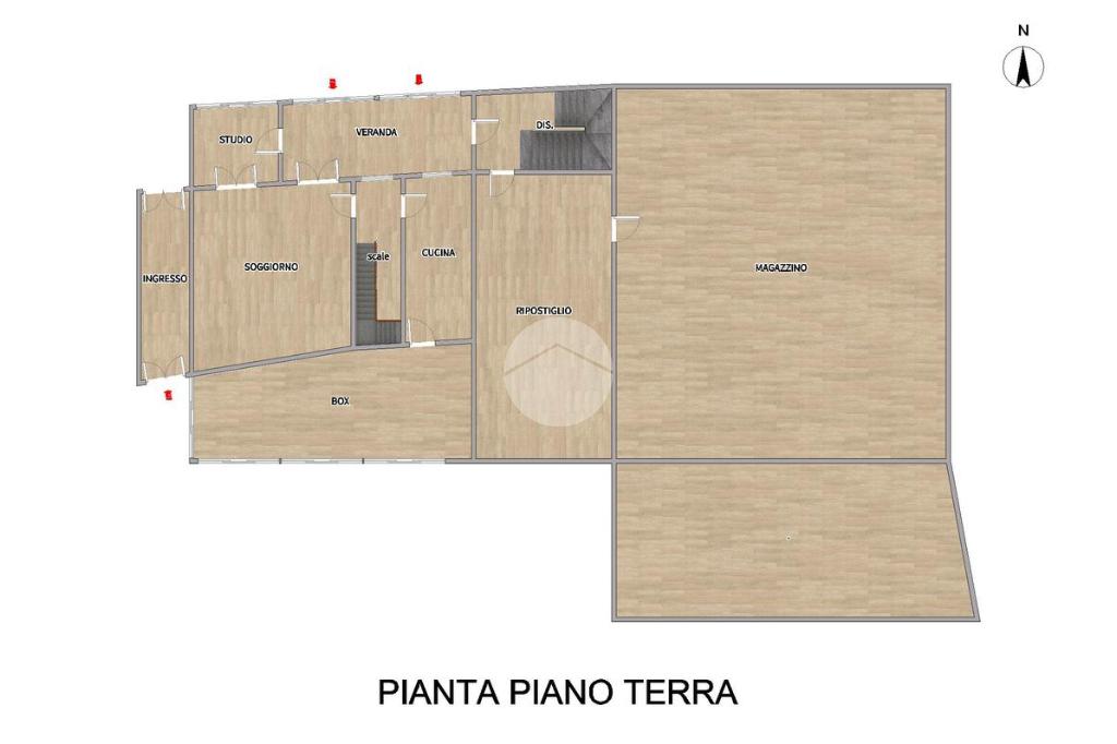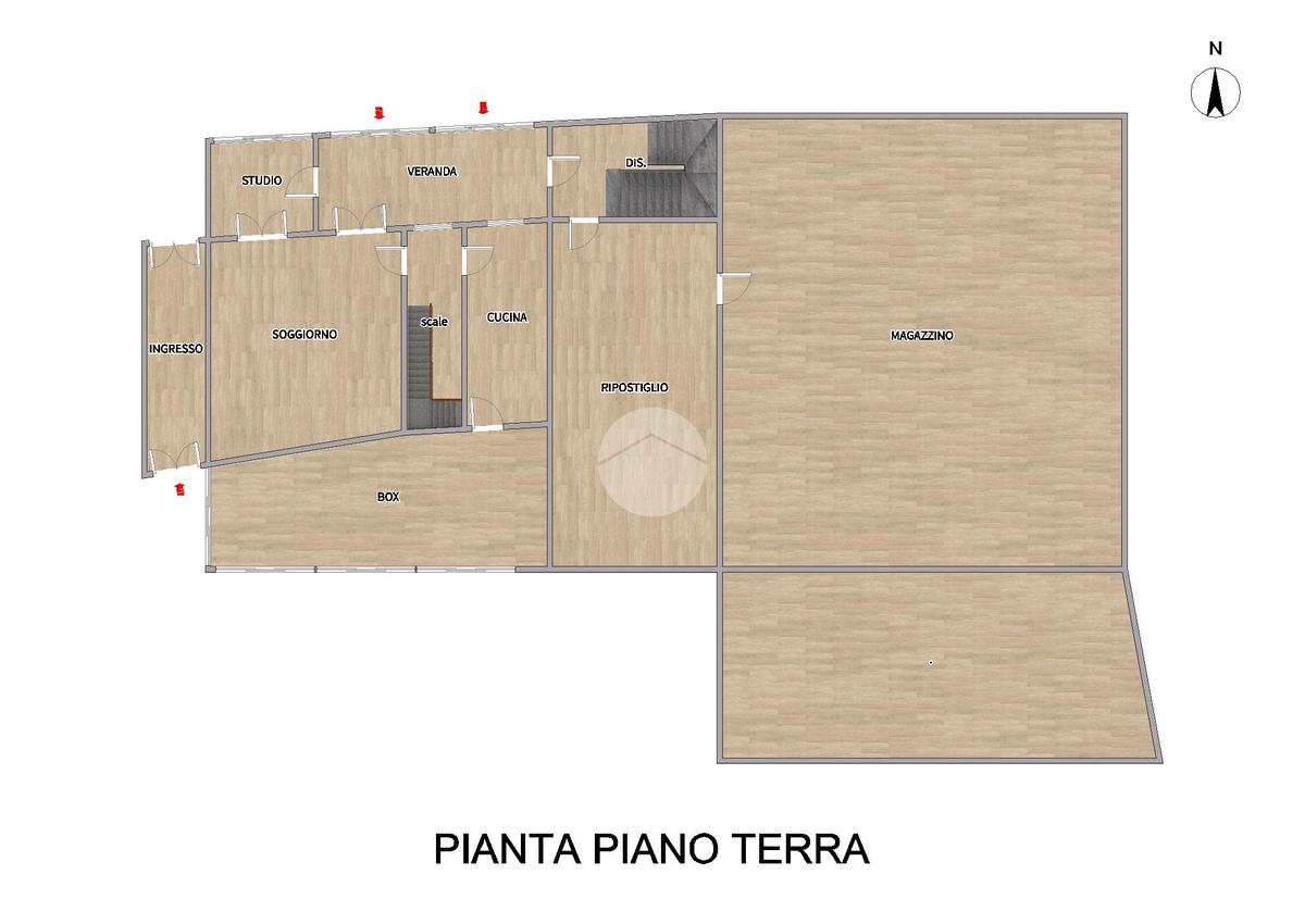 Al piano terra troviamo un ingresso spazioso e separato che conduce al soggiorno, alla cucina abitabile separata, a una veranda, a uno studio e a un bagno/lavanderia. Completano il piano un ampio ripostiglio e un grande magazzino.