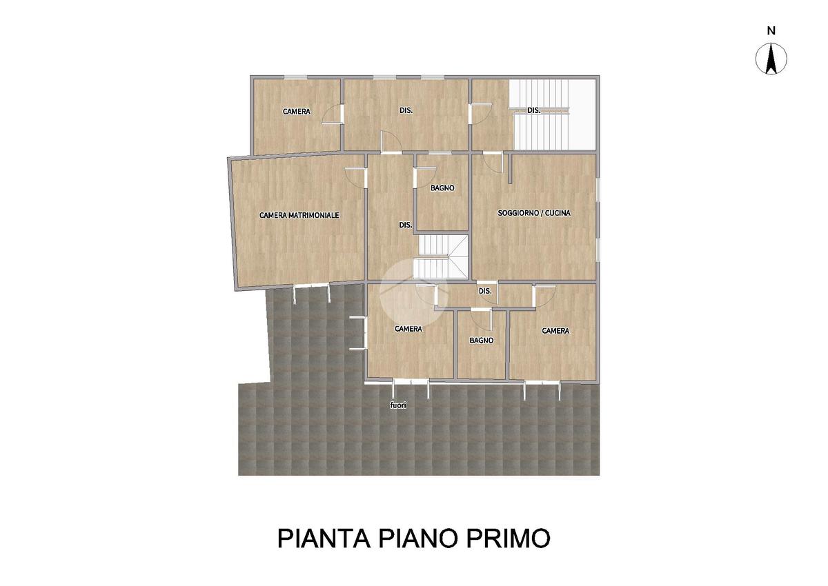 Salendo al primo piano, attraverso un comodo disimpegno, si accede alla zona notte composta da una camera matrimoniale con accesso alla grande terrazza vivibile, una camera singola, un secondo bagno e un ampio spazio disimpegno facilmente sfruttabile come area studio o relax.